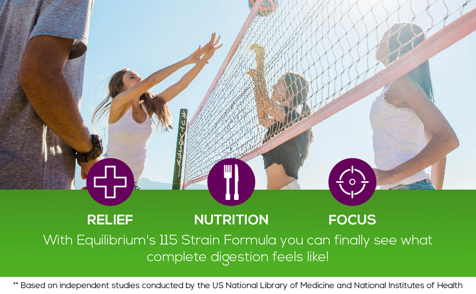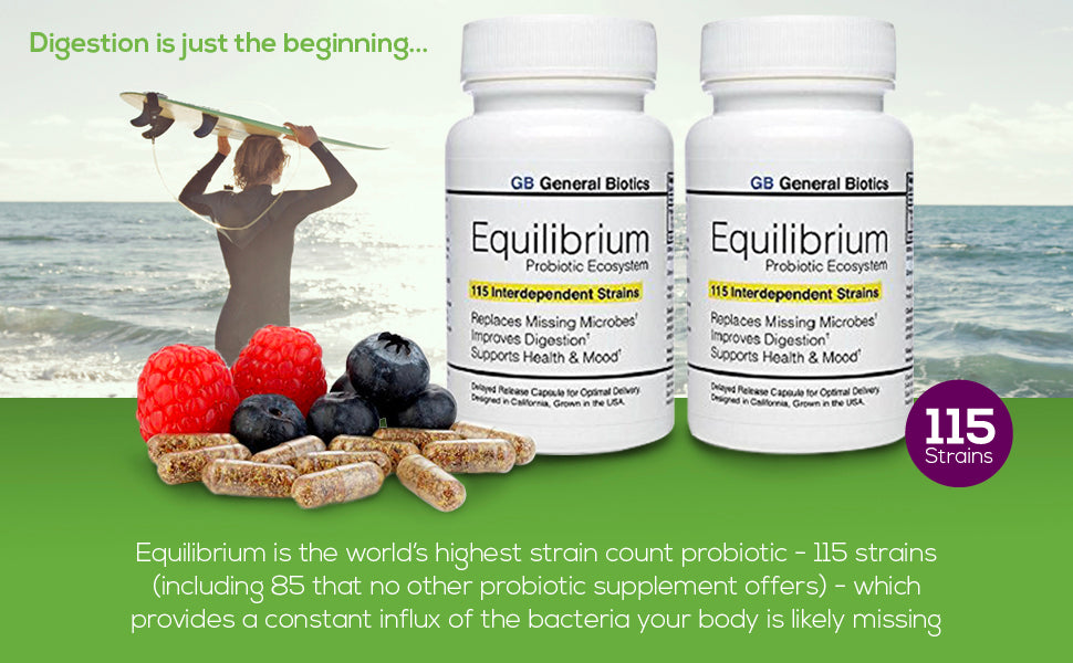 RESULTS Probiotics have been shown to promote long term digestive and immune health. Equilibrium is the world’s highest strain count probiotic, and so might address more intestinal tract issues than any other probiotic. Our once daily, highly viable organisms blossom deep in your GI Tract where needed most.
