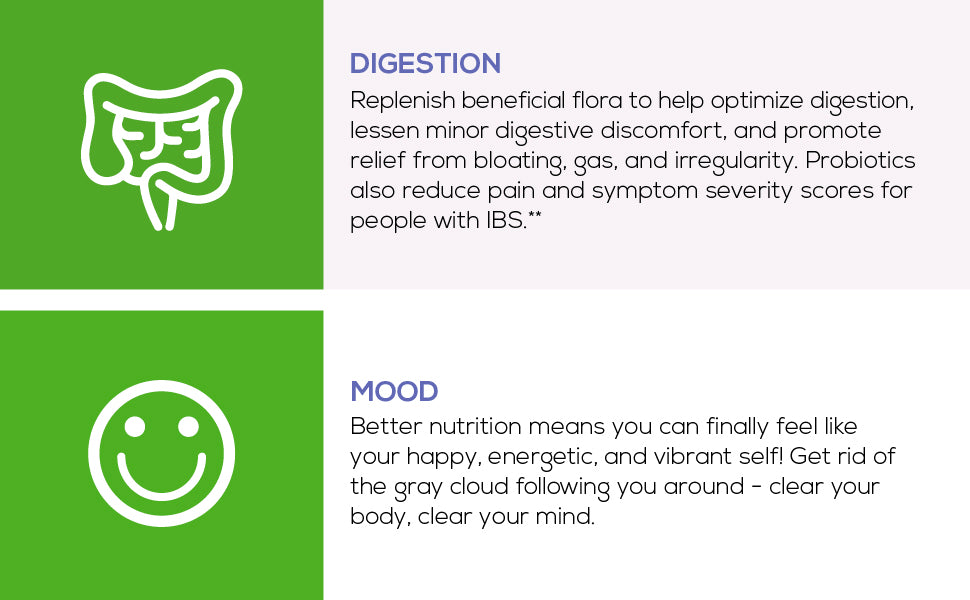 DIGESTION Our enteric, targeted release capsules are kosher and vegetarian, having a billion colony forming units with the potential to relieve stomach sensitivity. Complete digestion means your food may be more bioavailable, so your whole body benefits. Replenish beneficial flora to help optimize digestion, lessen minor digestive discomfort, and promote relief from bloating, gas, and irregularity. If you are dysbiotic, you will likely know it!